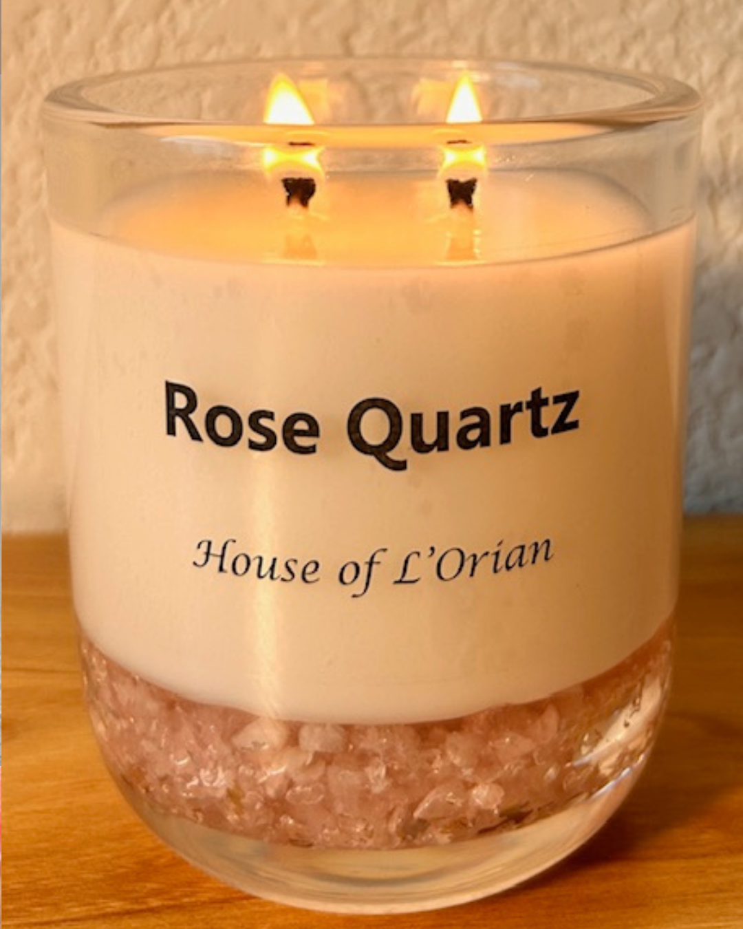 Hand-poured into a minimalist glass vessel layered with natural rose quartz crystals, this candle is more than a scent—it’s a statement of luxury, love, and inner calm. Perfect for moments of self-care or gifting with intention.